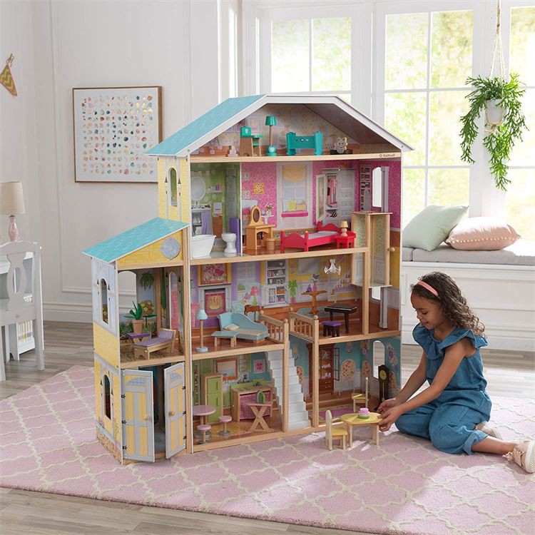 Verbringen Sie Stunden damit, mit dem Majestic Mansion Dolls House zu spielen. Dieses 136 cm hohe Herrenhaus verfügt über 4 Stockwerke, 8 Zimmer, eine große Treppe und einen Gleitaufzug, um die Puppen Ihres Kindes zu transportieren. Dieses geräumige Puppenhaus enthält ein 34-Möbel-Zubehörpaket, mit dem Kinder stundenlang Spaß daran haben werden, das majestätische Herrenhaus mit ihren 12-Zoll (30-cm) Modepuppen zu erkunden.