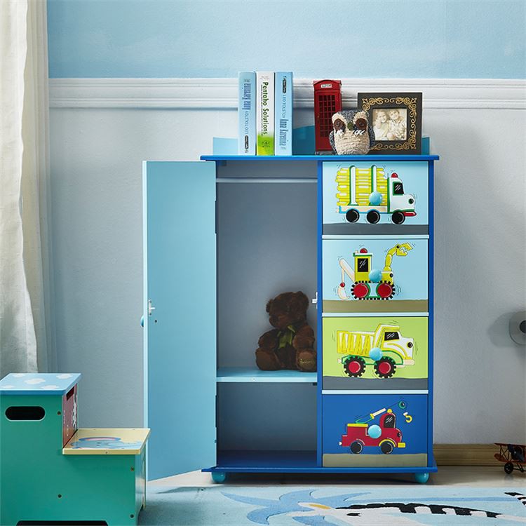 ●Blauer Kinderkleiderschrank mit 4 Schubladen