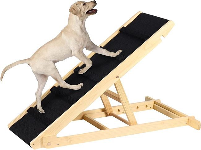 ·EINFACH ZU LAGERN UND ZU TRAGEN: Die hölzerne Haustierleiter lässt sich flach zusammenklappen und ist nur 25,4 cm hoch, sodass sie einfach in Ihrem Auto, unter Ihrem Sofa oder unter Ihrem Bett platziert werden kann. Diese hölzerne Haustierleiter ist nicht schwer, sodass Sie sie problemlos drinnen oder draußen tragen können.